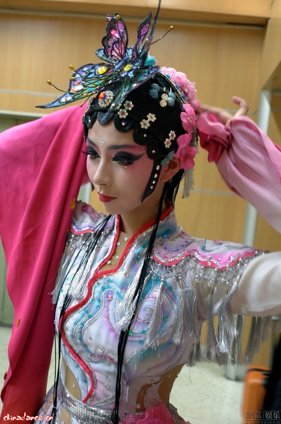 2014年央视马年春晚上的节目《百花争妍》是和戏曲相结合的舞蹈表演,把川剧表演中的甩水袖技巧舞蹈化,与京剧词牌巧妙融合。曾多次登上春晚舞台的李倩,此次受邀加盟马年春晚担任舞蹈《百花争妍》的领舞,这对于她来说是认可,也是挑战。 古典舞出身的李倩,在许多舞蹈作品中有着绝佳的技巧展示,先天的优异身体条件使许多人需要苦练的动作在李倩那里驾轻就熟。但今年在接到春晚导演组的邀约得知要表演的舞蹈节目以“水袖”为主时,李倩仍然感到了压力。因为水袖的功底人家一练就是十几年,而李倩则必须在短短的一个月内掌握全部的技巧。为了能够展现出新的一面,李倩欣然赴四川学习最正宗的水袖技巧。 李倩彩扮登场,蝴蝶头饰造型充满戏曲韵味,盈盈身姿舞态婀娜,舞动的水袖极富韵律感和造型感。已经第四次登上春晚舞台的她今年表演的节目《百花争妍》是将舞蹈表演与戏曲相结合,把川剧表演中的甩水袖技巧舞蹈化,古典舞出身的她又一次挑战自己向全国观众呈现出新的一面。 |
