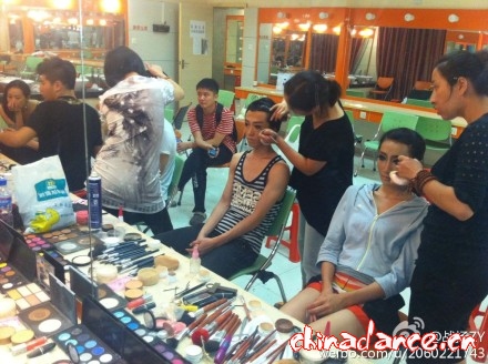 舞友在化妆,迎接