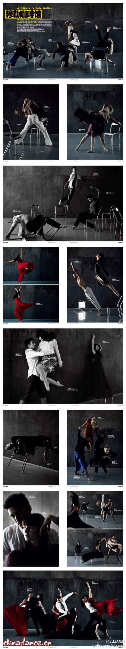 九月,ELLEMEN以皮娜·鲍什的名剧《穆勒咖啡馆》为灵感,特邀法国著名Ballet Preljocaj舞蹈团的六名成员,用身体语言和动态瞬间诠释着时装的魅力。曾为舞蹈演员的摄影师汪洋,将镜头投入到现实与虚拟的切换之中,呈现特定空间中发生的一出故事。摄影:YANG