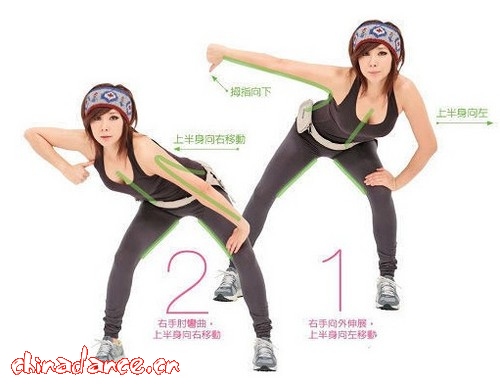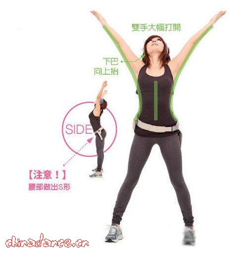 1、郑多燕减肥舞健身舞第一集—有氧操 2、郑多燕减肥舞健身舞第二集—哑铃操 3、郑多燕减肥舞健身舞第三集—塑身操 4、郑多燕减肥舞健身舞第四集—座上操 5、郑多燕减肥舞健身舞第五集—大球操 6、郑多燕减肥舞健身舞第六集—经典版 由于减肥舞的健身减肥效果突出,也是郑多燕红遍韩国以及日本的主要原因。循序渐进的练习会让自己的的身体更健康同时对于减肥塑身也有一定的效果。 ![]() 1、身体向前弯低,上半身向左移动 双脚打开比肩膀宽,双手放在膝盖上。膝盖弯曲,将臀部向后推出。 2、腰部固定不动,上半身向右移动 维持1的姿势,上半身向右移动。注意不要拱背。 3、右手向外伸展,上半身向左移动 左手放在膝盖上,右手向旁边伸展,拇指向下。膝盖蹲低,上半身向左移动。 4、右手肘弯曲,上半身向右移动 右手拇指转向朝上,手肘弯曲,同时上半身向右移动。左手维持放在膝盖上不动。 5、双手放在膝盖上,臀部向后推出 双脚打开比肩膀宽,膝盖弯曲,臀部向后推出,尽量蹲低。双手放在膝盖上。 6、双手做万岁状,伸展身体前侧 双手大幅打开,做出万岁状。下巴向上抬,将意识放在伸展身体前侧。 7、双手放在膝盖上,尽量向下蹲 双脚打开稍稍比肩膀宽,膝盖弯曲,臀部向后推出,向下蹲低。双手放在膝盖上。 8、腰部向右转,胸口转向左边 上半身起身,双手举高,腰部向右转,胸口转向左边。脚尖维持朝前方。 9、双手放在膝盖上,尽量蹲低 双脚打开比肩膀宽,膝盖弯曲,臀部向后推出,腰部尽量向下。双手放在膝盖上。 10、腰部向左转,胸口转向右边 上半身起身,双手举高,腰部向左转,将意识放在胸口转向右边。脚尖维持朝前方。 |